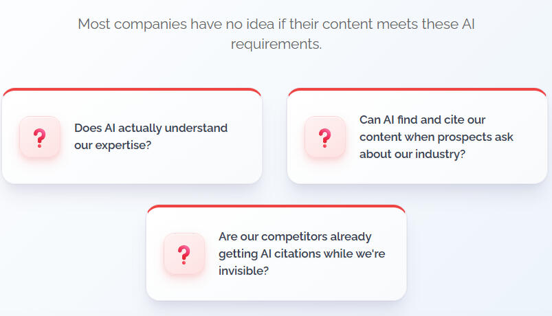 AI doesn't rank websites the same way Google does. It evaluates content for depth, authority, and conversational relevance.Most companies have no idea if their content meets these AI requirements.